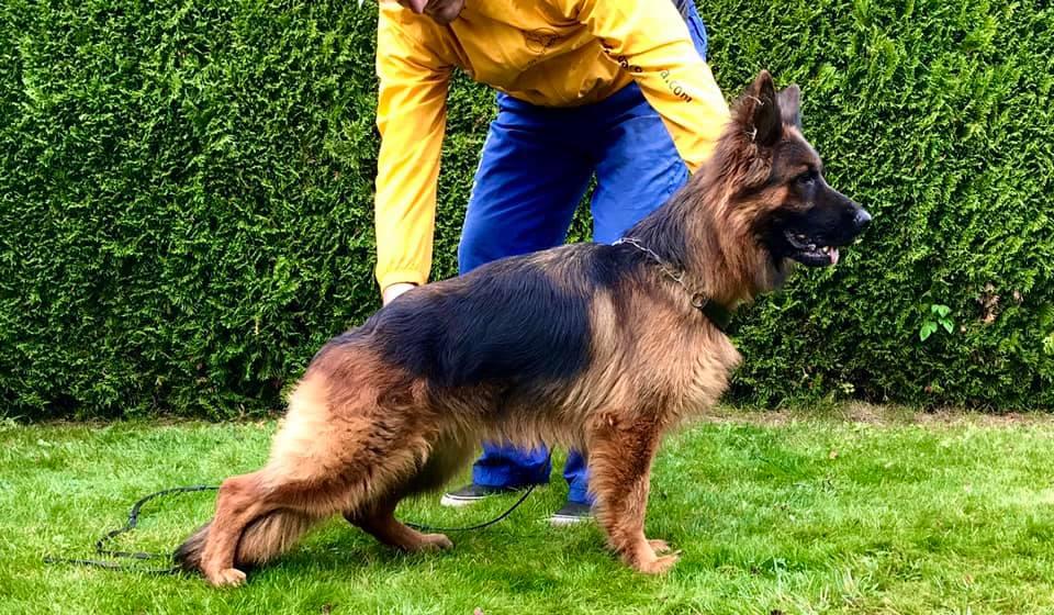 Xena is highly accomplished ranking 13th place in the World at the World Sieger Show in Germany. Xena exhibits a medium size and strength, complemented by a well-formed, expressive head. Her coat is absolutely stunningly gorgeous that it turns heads everywhere! Folks can’t help but stop and ask about her, and with her irresistible charm, she basks in her favorite thing—oodles of affection! She has normal withers and a firm back, though the croup is somewhat short and notably sloping. The chest proportions are standard, and the front is straight, featuring good angulation in the forequarters and excellent angulation in the hindquarters. The powerful rear demonstrates effective reach, with straight hindquarters and slightly wide toe placement in the front. Additionally, there is a commendable willingness to run, accompanied by an impressive presentation. With her gentle, yet energetic nature, Xena effortlessly wins the hearts of everyone she meets. Her intelligence shines through in her quick learning ability, making training sessions a delightful experience for both her and her handler. When she’s not busy showing off her impressive skills, Xena enjoys basking in the sun or playing a spirited game of fetch. Her loyal and protective instincts make her not only a cherished family member but also a reliable guardian. Xena’s presence fills the home with laughter and love, and her puppies are sure to inherit her endearing traits, promising a future filled with joy and adventure for their new families.