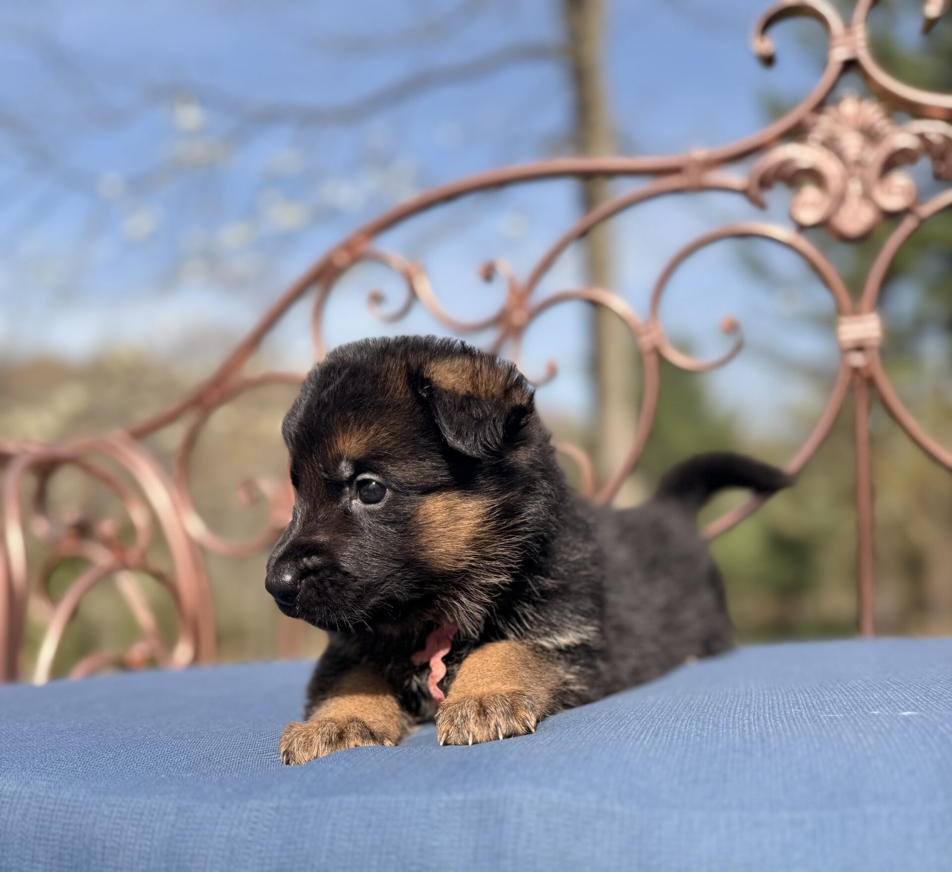 The curriculum is designed to foster the development of healthy, confident puppies. Being raised in our home allows us to observe important behavioral cues in each puppy. Foundational training is gently introduced, helping puppies learn to respond to human guidance and develop early manners that support strong relationships with people. Temperament assessments are conducted to help ensure the most appropriate placement. These foundational elements are essential in raising German Shepherds to reach their full potential.